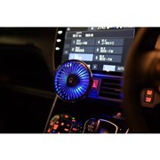 車内エアコンのフィンに装着することで、エアコン効率が向上する車載用扇風機。ブルーのLEDを搭載し、夜間のドライブを演出することも可能。