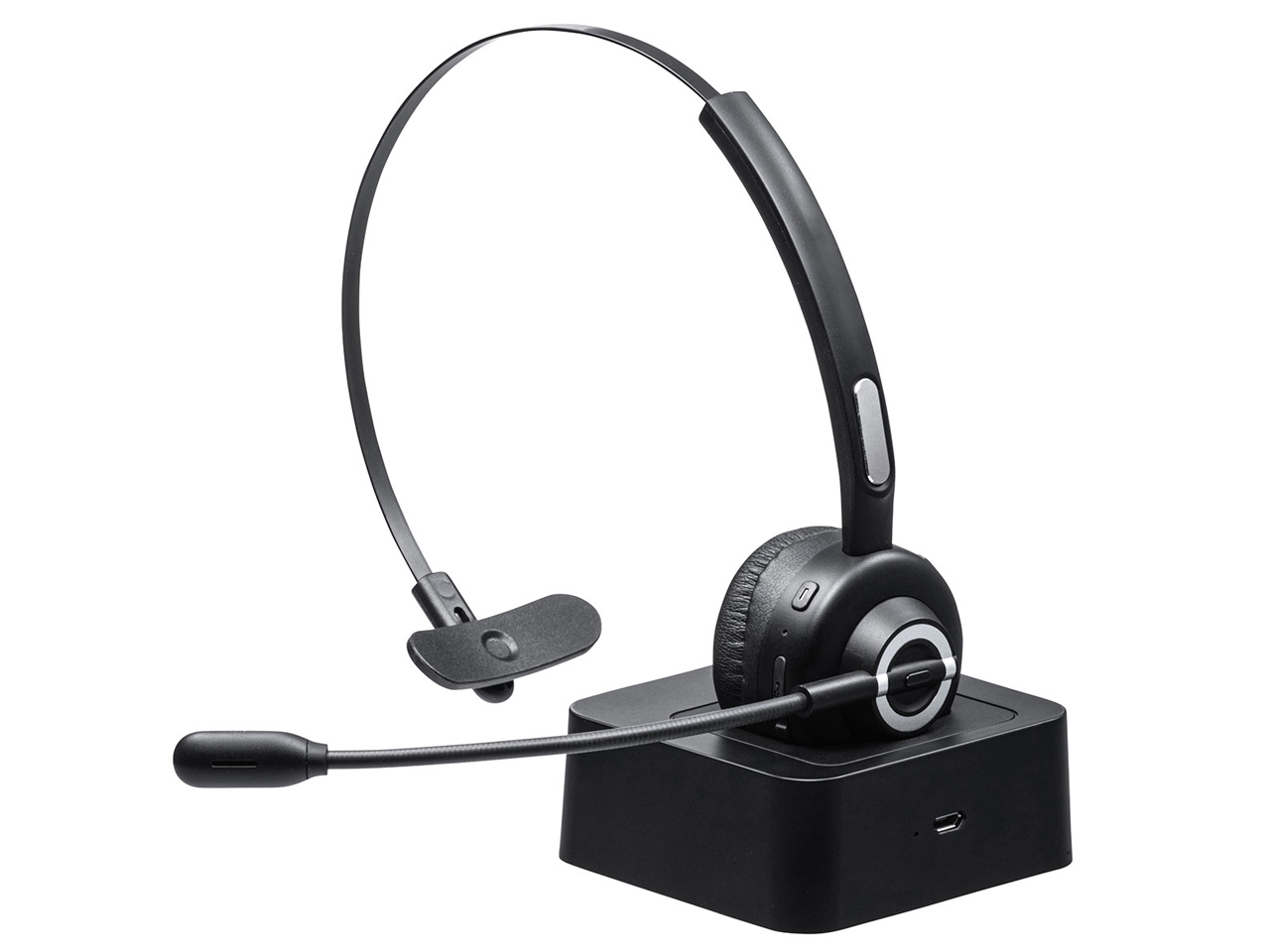 - 充電クレードル付きBluetoothヘッドセット(片耳タイプ)。周りのノイズを軽減し、自分の声をはっきり相手に伝えることができる単一指向性マイクを採用。