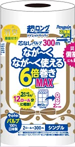 ペンギン 芯なし 超ロングMAX パルプ シングル 300m 2ロール