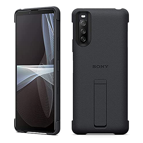 ソニー基準のムダのないシンプルなデザインとなっています。 落下時の強度試験や品質基準など、ソニー基準をクリアしており、背面にはきちんとロゴもあります。 純正ならではのケースのフィット感、そして手になじむ感じもたまりません。 色合い込みでとても上品さがあります。 背面には操作簡単なスタンドもついているので動画視聴も楽々です。 また防水加工もされているため、濡れたら乾かしてまた取り付けるだけと安心です。