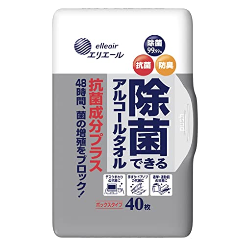 エリエール 除菌できるアルコールタオル 抗菌成分プラス ボックス本体 40枚