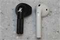 air pods(初代)と比較/ケース。ふたを開けるとひょこっと出てるMのマークがかわいい