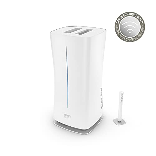 - 床上140cmの高さまでミストが舞う、パワフルなハイブリッド式加湿器。超音波式+ヒーター(加熱)式で水を温め加湿する。
