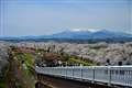 shuu2さん 蔵王連峰 満開の桜 電車 贅沢な風景です |