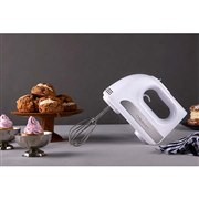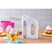 - 3段階の速度調節ができる、シンプル操作のハンドミキサー。パワフルに使いたい人にも、お菓子作り初心者の人にも使いやすいエントリーモデル。