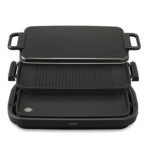 ホットプレート製品として標準的な仕様の製品 付属しているものは、フラットプレートとストライブ段差入り プレート、金属製のフタとよくあるパターン 温度調整は電源差し込みプラグ部にダイアル式の温度 設定ガツオていて保温から最高で250設定まで可能 プレートは取り外しができるので丸洗い可能 プレートには取っ手が付いているのでプレートが完全に 冷めなくても持ち運べ熱いうちに洗うと簡単に汚れが 落ちるので便利。 取っ手のないプレートも多いから取っ手付きプレートを セットしている本器は一歩リード