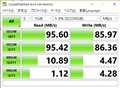 エレコム製「MR3-A006BK」で計測した結果。読み書きともに100MB/sを下回る