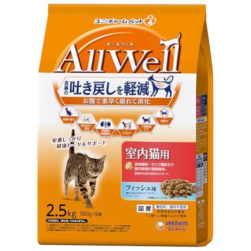 AllWell 室内猫用 フィッシュ味 挽き小魚とささみのフリーズドライパウダー入り 2.5kg(500gx5袋)