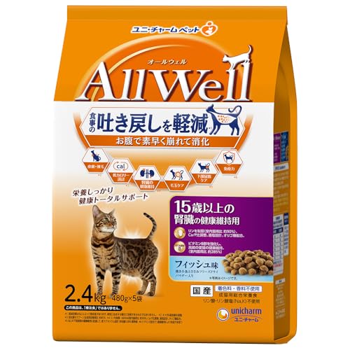 AllWell 15歳以上の腎臓の健康維持用 フィッシュ味 挽き小魚とささみフリーズドライパウダー入り 2.4kg(480gx5袋)
