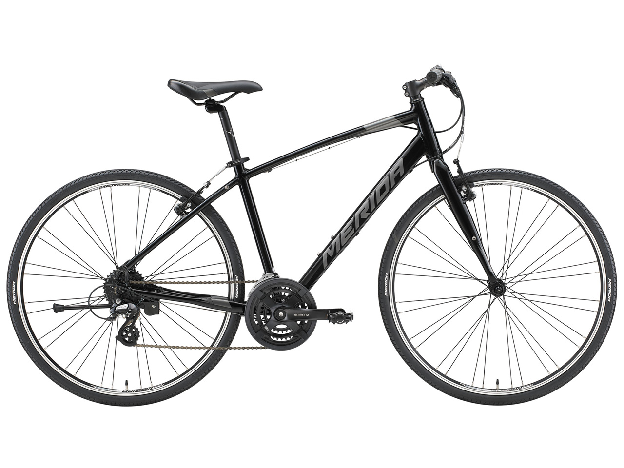 【2025.4追記】 本機は、エントリークラスのクロスバイクモデルとなります。 タイヤも太めでツーリングに行ったり、タウンユースで使うのに向いたバイクですが、そのような使い方では、夜間走行の可能性も高いのでバッテリーライトの装着が必須となりますが、クロスバイクはこのモデルもそうですが、バッテリーライトすらオプションであることが多く、クロスバイクはマウンテンバイクと並んで無灯火走行が特に目立つ車種ですので無灯火走行は行わないようにご注意を。 【デザイン】 トップチューブが細く、ダウンチューブが太い最近の流れを汲むアルミフレームに剛性の高いしっかりとしたしたVブレーキを装備した、クロスバイクです。 【仕様】 フレームCROSSWAY TFS フォークSteel O.S. ヘッドセットVP-A86 ギヤクランクShimano FC-TY501 48-38-28 CG L:170mm BBセットCartridge Bearing F.ディレーラShimano Tourney FD-TY710 R.ディレーラShimano Altus RD-M310 シフターShimano ST-EF500 3Sx8S F.ブレーキセットTektro C310 R.ブレーキセットTektro C310 ブレーキレバーattached リムMerida- 700C-V Alloy 32H スポークBlack stainless F.ハブJY-751SE 32H QR R.ハブJY-F362TSE 32H QR タイヤCST C-1985 32C ギヤShimano CS-HG200-8 12-32 チェーンKMC M700 ハンドルバーMerida Speed Alloy 560 φ 25.4 ハンドルステムMerida Comp Alloy L:90mm(41/46cm) L:105mm(50cm) サドルMerida COMFORT シートピラーMerida Comp Alloy φ 27.2mm シートクランプMerida Comp QR ペダルVP-467 AL 【総評】 メリダ自慢のTFS製法によるアルミフレームを使用したクロスバイクです。 街乗りも考慮してサイドスタンドを標準装備するなど実売価格5万円クラスのメイン用途となる街乗りにも対応しています。 このクラスになると、それなりに本格的なスポーツ走行も可能ですので、時としてスポーツ走行も行う、シティサイクルとしても良い選択肢となりますね。