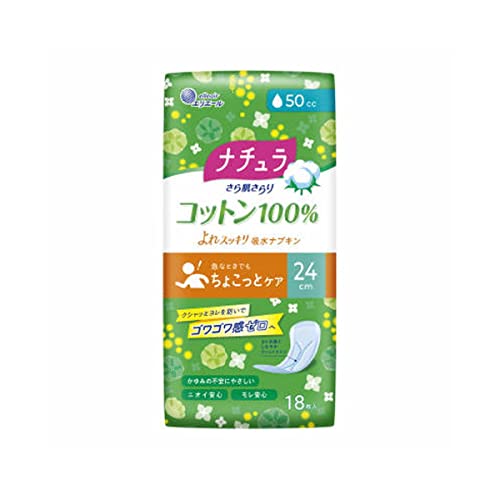 ナチュラ さら肌さらり コットン100% よれスッキリ吸水ナプキン 24cm 50cc 18枚