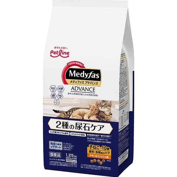 メディファス アドバンス 2種の尿石ケア 子ねこから10歳まで 避妊・去勢後のケア チキン&フィッシュ味 1.25kg(250gx5)