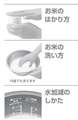 - 好みの食感やメニューに合わせて「銀シャリ」「かため」「やわらか」「もちもち」の4通りに炊き分けられる。食洗機で洗えるワンタッチふた加熱板を装備。