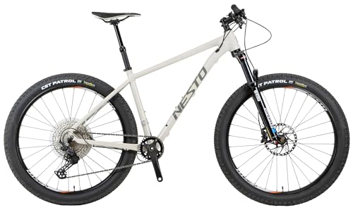 【2025.3追記】 本機は、本格トレイル走行のために作られた本格マウンテンバイクモデルとなります。 自走での移動など夜間の使用時には、バッテリーライトの装着が必須となります。 自転車は交通弱者であり、自動車と衝突した場合、大事故の可能性が高く、自動車に発見してもらうために、バッテリーライトは夜間走行では必須となり周囲から存在を認知してもらうための重要アイテムなので、自分は見えているから大丈夫という感覚は大変危険なので、自分の身は自分でしか守れないと認識して目立つ服装に明るいバッテリーライトを点灯して自転車に乗りましょう。 -以下追記前部分- 【デザイン】 ネストブランドの本格マウンテンバイクです。 上級機種のためペダルはオプションで好みのものを選択するタイプとなっています。 【仕様】 フレームサイズ 14"(150cm-165cm) 16"(160cm-175cm) 18"(170cm-185cm) フレーム:6061アルミ フォーク:SR SUNTOUR XCR34 シフター:SHIMANO SL-M6100 Fディレイラー:未装備 Rディレイラー:SHIMANO RD-M6100 SGS クランク:アルミ 32T カセット:SHIMANO CS-M6100 12S 10-51T ブレーキ:SHIMANO BR-M6100 タイヤ:CST PATROL FOLDABLE 27.5x2.80 FV チューブレスレディ 12SPEED 重量:14.1kg(18") ペダル:オプション 【総評】 ネストブランド本格的なマウンテンバイクモデルです。 フレームの強度は高いはずとしか言えませんが、フロントフォーク一つとっても6万円程度のモデルが1万円程度のフロントサスを使うのに対して、この機種のフロントサスは3万円を超えるものが付いており、ここでは詳細を書きませんが、強度をはじめとした性能が全く違いますね。 このモデルはマウンテンバイク用に開発されたシマノDEOREコンポーネントを各部に採用しています。本格マウンテンパイクモデルとして良い選択肢の一つではと感じました。