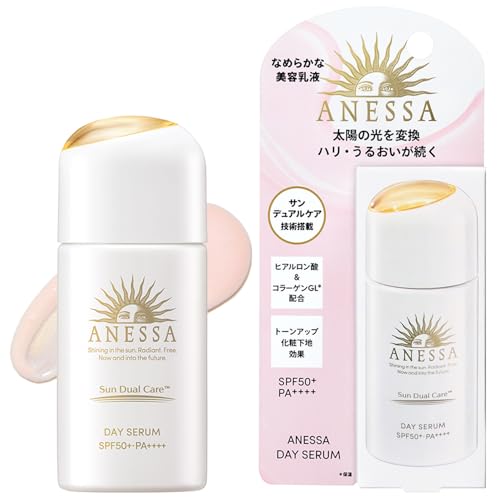 アネッサから出ているこの商品を使ってみました。 ピンクベージュのような色合いの中身で、結構ゆるい 感触の液体なので伸びがかなり良く、肌もそれなりに しんなりとしますが、肌の表面がサラサラとした仕上がりで とてもツヤが出る仕上がりでした。 ただ、ツヤは時間が経つと肌のサラサラ感はありますが、ツヤ 自体は肌に馴染んであまり目立たなくなっていました。 この商品は化粧下地として使えるのですが、サラサラ仕上げ なので肌にしっとり感が下地にはほしい方にはややサラサラ とした軽い仕上がりなので物足りなさがあるかもしれませんが 日焼け止めではメジャーなアネッサのUV美容乳液なので、真 夏の汗をよくかく時期にはとても良く、肌のケアをしながら 日焼け防止も出来て良いと思います。