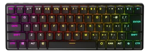 高校生の子供が誕生日プレゼントにゲーミングキーボードが欲しいというので、機能や性能など自分でいろいろ調べてどれにするか決めなさいと言ってたところ、これを選んできた。 私がゲームに使用するわけではないが、動作確認も兼ねて少し触って試してみた。 第一印象は、小さいということ。でも、ノートパソコンにあるようなキーが小さいということではないので、キータッチはしっかりしている感じがした。 反応速度などゲーミングキーボードとしての性能はよくわからないが、本人としては満足はしているようだ。 F1〜F12のファンクションキーが単独では入力できず、一般的な日本語キーボードにあるキーが単独ではないなど、ゲーム以外には使いにくそう。 それにしても、たかがキーボードに3万円は高いなぁ。