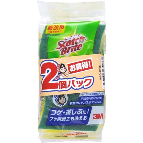 スコッチブライト ハイブリッド抗菌ウレタンスポンジたわし 2個 [グリーン]