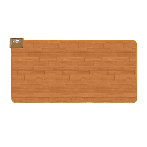 【デザイン】フローリングに合うデザイン 【質感】ビニル感があるが安っぽさは感じない 【パワー】足裏がじんわり温かくなり気持ち良い 【耐久性】無評価 【収納性】丸めて収納すればコンパクトになる 【設定機能】弱中強の三段階 【総評&感想】台所の足元に使用。耐水性が強く水をこぼしても布巾で拭き取れば良い。また汚れに強い。 サイズは176mm×88mmと横長で大人二人が立つスペースがある。絨毯タイプの肌触りが苦手な方はこのタイプが良いかもしれない。