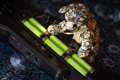 | AE-20、キーレイアウトはサックスと同じです | 現在の設定を確認するためのLCDです | 音色、キーを変更するためのダイヤルです | ニッケル水素電池3本で、3時間以上演奏可能です |