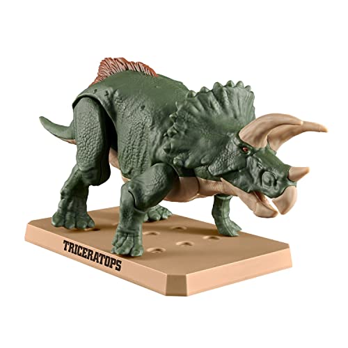 バンダイより出た「トリケラトプス」のプラモデルです。 同シリーズの「ティラノサウルス」がとても子供にウケがよく、こちらもチャレンジしてみました。 結果、ティラノサウルスの方が子供にはよかったみたいです。 小学校低学年の子ですが、一人である程度は作ることができましたが、ティラノより少しややこしいところがあったみたいです。 質感はリアリティがあってすごくいいです。 「トリケラトプス」と書かれた台座つきで、こちらはティラノと違って固定はできませんでした。