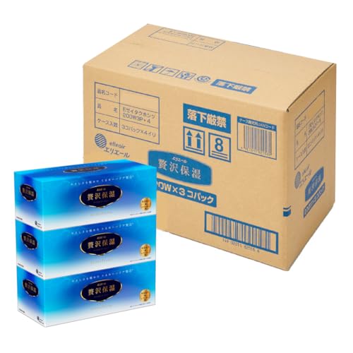 このティッシュペーパーは、肌に優しい成分が配合されていて、グリセリン、コラーゲン、高分子保水成分、そしてヒアルロン酸が含まれています。独自のローション薬液処方により、冬場の乾燥期でも肌をしっとりと保湿してくれます。そして、2種類の柔軟剤が繊維を滑らかに改良し、肌への摩擦を低減しているんです! 私自身も使ってみましたが、本当にしっとり感があって、鼻をたくさんかんでも痛くならないです!しかも、濃いめな紺色のデザインに高級感があるので、見た目もおしゃれです。 価格が少し高めですが、私は自分の肌に直接触れるものだからこそ、ちょっと高くてもいいものを使いたいと思います。特に花粉症の季節はそう実感しています。 そんなわけで、大王製紙のエリエール贅沢保湿200W3P×4は、肌にやさしくしっとり感があって、高級感のあるデザインが魅力的なティッシュペーパーです!