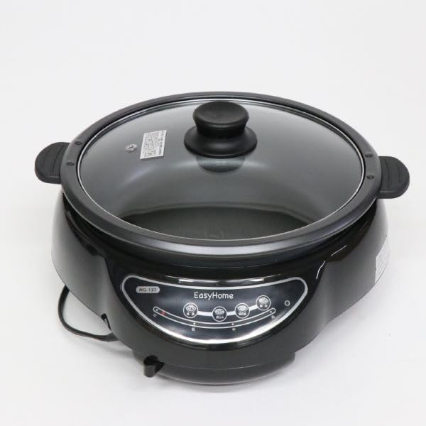 使いやすい電気鍋製品。 パワーは1200Wと大き目なので何かの電気製品と 併用するとブレーカーが落ちるのでコンセントからは 単独使用が良い。 温度調整はレバーハンドルで温めから高温まで 温度表示は無し。 鍋部分が丸ごと取り外せるので洗いやすい ヒーターが円形の金属板に埋め込まれたタイプで これも凸凹がなく拭き掃除が楽。 コードは直出しで収納機能がないのがちょっと 面倒なところ。 それ以外はお安くて使いやすい電気鍋である。