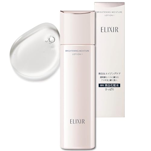 エリクシールホワイトがこの商品になったので購入しました。 美白&エイジングケア商品とのことで、容器は以前の白色から 薄いピンク色になっており、ほんわかした色合いで良かったです。 中身は透明でこのさっぱりタイプはとろみが付いていないのですが 塗った感じがさっぱりなのに、肌の上をさらさらと滑る感じではなく 若干の油分感があるような感じで肌への浸透がすっと早く、さっぱり タイプでも敏感肌化粧水のように少ししんなりする使い心地でした。 塗ると肌がすべすべした感触になり、エイジングケアのローション だけあり、ほんのり肌がふっくらした感じの仕上がりでした。 また、エイジングケア商品でも使っていて重たさがないので、結構 幅広い年齢の方に使いやすい商品だと思いました。 香りがやや強めのアクアフローラルなのですが、塗ってしばらくすると あまり気にならなくなりました。