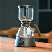 「本格サイフォンの愉しさを電気式で再現した」というコーヒーメーカー。ダイヤル操作により、火力の調節ができる。ガラスボールとヒーターは分離でき、ボールは丸洗い可能だ。また、A5サイズほどのスペースに設置できるコンパクトサイズを採用した。