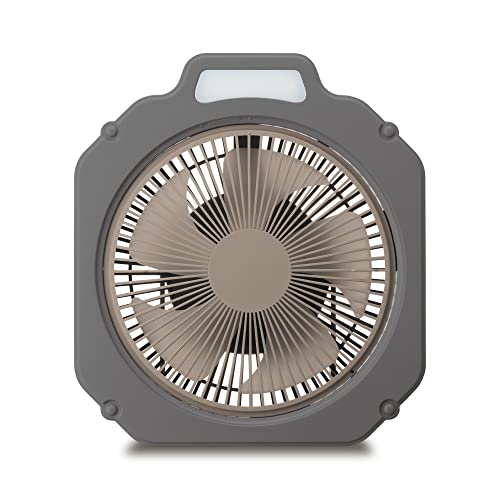 屋外キャンプなどで使える扇風機です。もちろん 屋外に限らず、室内でも使えます。据え置きとしても 吊り下げて使うことも可能です。屋外用なので 防水構造はしっかりしているので、多少の雨程度 であれば全然大丈夫です。 羽根は5枚で、比較的大きくて直径20cm近くあるので、 大風量で、4段階(微風モードあり)で切り替えられます。 LEDライトが付いているので、キャンプなので夜に使うときには とても便利です。LEDは3段階で光の強度を調整できます。 扇風機、LEDともに、2電源に対応しているので。 充電してつかうことも、USB給電で使うこともできます。