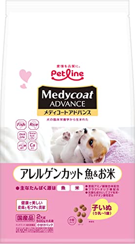 メディコートアドバンス アレルゲンカット 魚&お米 子いぬ り乳〜1歳 2kg(500gx4)