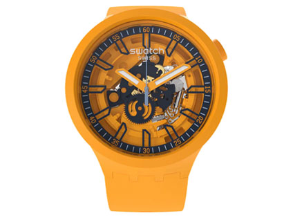 直径47mmのビッグケースのBIG BOLD(ビッグボールド)コレクション。 FRESH ORANGE(SB01O101)。 47mmのビッグケースは腕元でかなりの存在感。 本モデルの明るく元気なオレンジカラーがより一層腕元での存在感を際立たせる。 表スケルトンで内部のクォーツメカが見える仕様。 オレンジの時針・分針は背景のオレンジや内部メカと被って視認性がどうしても犠牲になってしまう。 ケース厚さは11.75mm。 リューズはビッグケースであるがゆえに手に当たらないよう2時位置に配置。 プラスチックケース&シリコンストラップ。 3気圧防水。 17,600円。