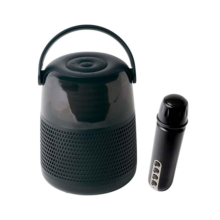 【デザイン】 円筒形のハンドル付きぽっとの様なスタイルです。 【品質】 きちんとつくられています。 【音質】 57mmφ径のスピーカーユニットを搭載しています。 人の声を中心としたサウンドです。 【通信の安定性】 同じ部屋内で使う状況では安定した接続です。 【操作性】 音量と再生/一時停止程度の操作ですので簡単に操作できます。 【サイズ・携帯性】 113mmφの円筒径で高さ146mm 【総評】 Bluetooth対応のワイヤレススピーカーですが マイクが付属しておりカラオケ用途の製品です。 コンパクトな製品で少人数でまとまって遊ぶ用途の製品になります。