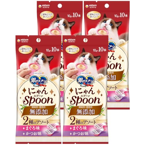銀のスプーン 三ツ星グルメ おやつ にゃんSpoon 無添加 2種のアソート まぐろ&かつお味 100g(10gx10本)x4