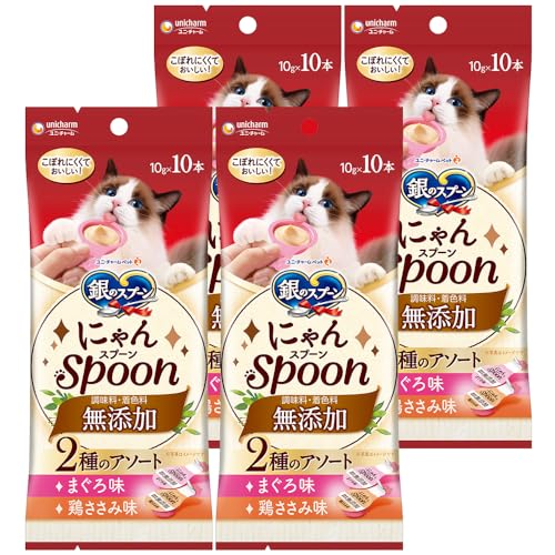銀のスプーン 三ツ星グルメ おやつ にゃんSpoon 無添加 2種のアソート まぐろ&鶏ささみ味 100g(10gx10本)x4