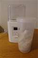 - 専用容器、計量スプーン、牛乳パック用クリップ、水切りカップが付属する。