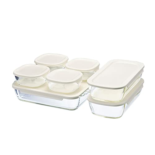 スタッキング耐熱ガラス コンテナ・スクエア 7個セット HKOZ-8002-OW のレビュー・評価