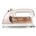 - ゆるやかに湾曲したかけ面形状で全方向に楽に動かせる「ラウンド美ラクルベース」を採用した、本体質量約0.95kgのコードレスアイロン。
