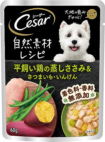 シーザー 自然素材レシピ 平飼い鶏の蒸しささみ&さつまいも・いんげん 60gx16袋 のクチコミ