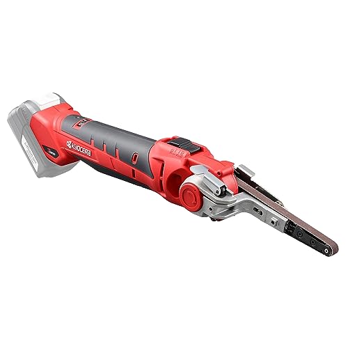 コードレスのハンディ式ベルトサンダー ベルトの幅が10mmなので小さめな穴とかの鬱側でも 研磨が出来るのが便利。 しかもコードレスなのでさらに使い易い。 使用するバッテリーは10.8Vリチウムイオンバッテリー ベルト速度は6mから7m/分 ベルト速度は速度調整ダイヤルで1〜6に調整可能 ヘッド部は55度の範囲で角度が変えられます。 良く削れて便利ではあるが、なにぶん幅が狭いベルト サンダーなのでエンドレスベルトの消費も速いので スペアーはある程度用意しておかないとダメ。