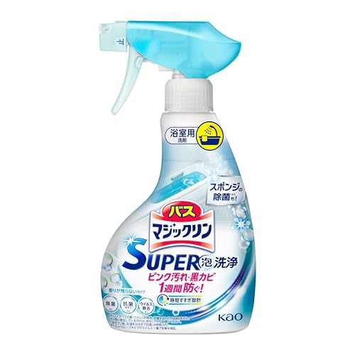 こちらの他にグリーンハーブやアロマローズの香りの2種類がありますが、私は強い香りが少し苦手なのでこちらを注文しました。結果、ほんとに香り控えめで気持ち悪くならなかったので満足しています。 これまでは通常のバスマジックリンを使用していましたが、こちらのSUPER泡洗浄の方が泡立ちが良く、しっかりと浴槽の側面に付着してくれるので、垂れにくくなっているように感じます。 ピンク汚れ、黒カビを1週間防ぐシリーズ最高レベルの防カビ機能とのことで、純粋に技術の進歩はうれしく思いますが、あくまで防カビということですので、既に発生している汚れはきちんと除去してから使用しましょう。