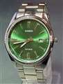 高見えするダークグリーン文字板の3針デイト