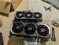 - GeForce RTX 4070 Ti SUPERを搭載したビデオカード。空冷ファン(3.1スロット占有)を備えている。