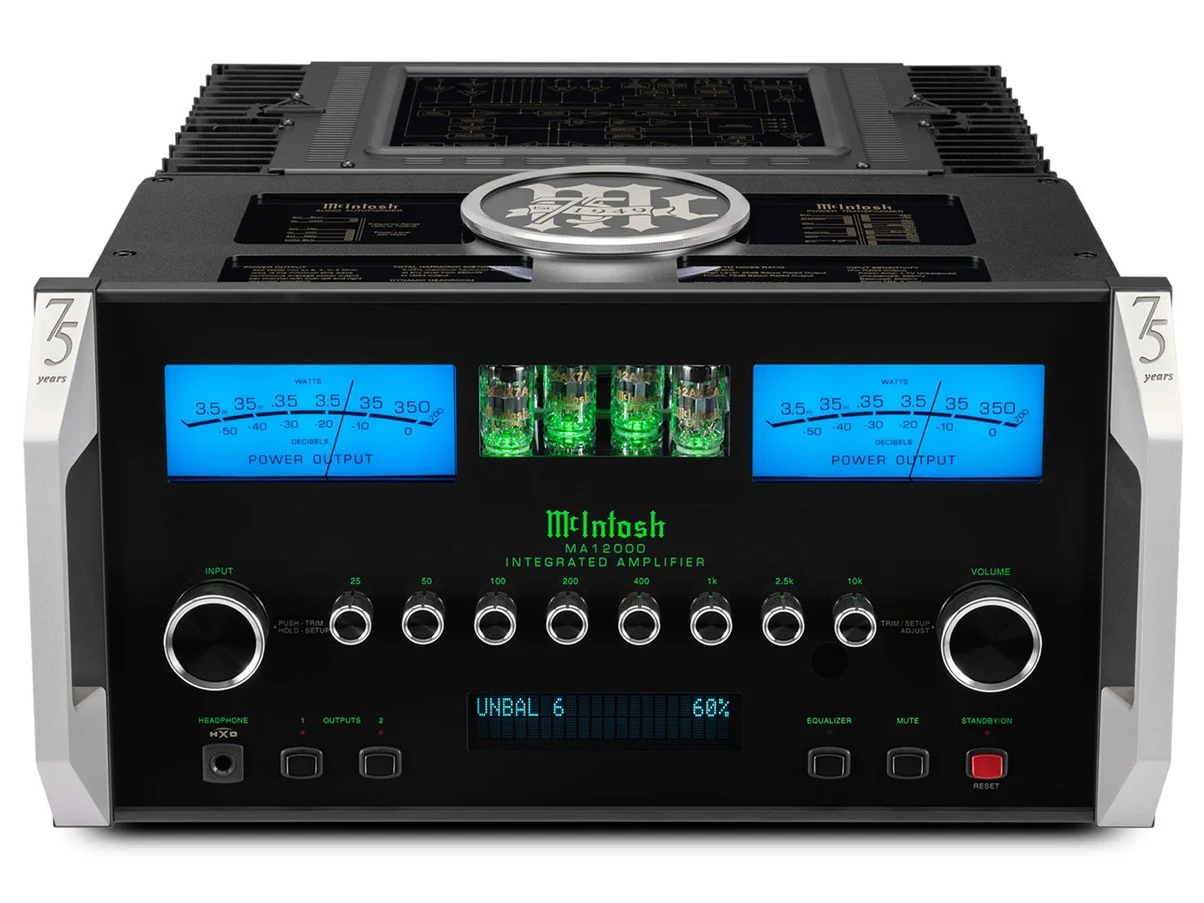 ハイエンドインテグレーティッドアンプ MA12000-ANの75周年記念モデル 記念モデルゆえにハンドル部分に75周年デザインの印字と天板部分に 大型の記念エンブレムが装着されています。 スペックで見る限りはノーマル品との違いはありません。 元々ハイエンドゆえに定格出力 350Wと強力 デジタル入力の豊富さと高性能DAC搭載。 アナログ入力にMC対応・MM対応のフォノ端子などなど 全て網羅しているアンプ製品で不足などありません。 サウンドは重心が低くて力強いパワー炸裂の音色を どんなスピーカーからも引き出してくれるアンプ製品です。