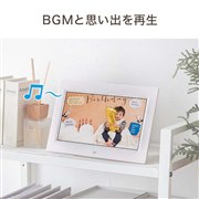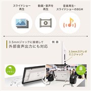 1024×600ドットの解像度に対応したデジタルフォトフレーム。SDメモリーカード(32GBまで、SDXCは非対応)またはUSBメモリーに保存した、写真、音楽、動画を再生することが可能だ。
