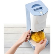 水だけでできた氷のほか、冷凍フルーツ、ジュースや練乳などを凍らせた氷にも対応し、「お店で食べるようなふわふわなかき氷を自宅で再現できる」とうたう、かき氷機。刃の高さ調節ダイヤルを搭載したことで氷の粗さを変更できるほか、氷を押さえるスパイクベースを搭載し、ジュースなどのやわらかい氷を押さえることが可能。また、刃の高さを調節しながら器に盛りやすいよう、新たに電源スイッチをリニューアルした。