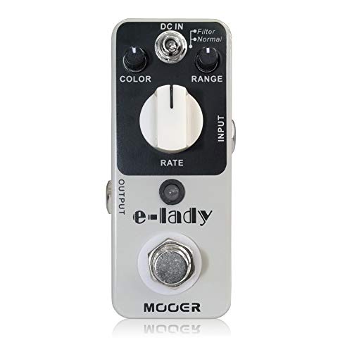 フランジャーは、コーラスとよく似た構造のエフェクトです。効果が激しく、音が強くうねったり、歪みを加えるとジェットサウンドと呼ばれるようなシュワシュワした音になったりします。中でも強い効果を作るフランジャーの名機として知られるペダルに、Electric Mistressというペダルがあります。そのペダルは巨大で、ミニサイズのe-ladyとは対極にいるように見えますが、実はe-ladyはElectric Mistressのサウンドを元に作られたペダルです。今回はこのe-ladyを店頭で試してみました。このペダル、ミニサイズでありながらBBDを用いたアナログ回路で作られています。NormalとFilterモードを切り替えるスイッチがありますが、このFilterモードはいわゆるフィルターマトリックスモードで、一般的な言い方ではManualモード等と呼ばれます。フランジャーは通常はフィルターが動くように音をスウィープしますが、その動きを手動で固定できるのがFilterモードです。これにより音に特徴的なレゾナンス感を加えた状態で止めることができ、音にローファイ感を加えてフルシアンテ的な音にしたりできます。もちろんフランジャーらしくジェットな音を作ったり、強く設定してうねるような音にすることもできます。オリジナルElectric Mistressと比べると全体的にバランスが取られたトーンとなっているように感じられるので、Electric Mistressらしい音色でありながらもう少し使いやすくなったペダルと考えることもできます。このサイズと価格帯でアナログフランジャーを長年制作していることもすごいと思いますが、音のクオリティとしてもかなり高いです。もちろんオリジナルのヴィンテージモデルにしかない味わいや、よりハイエンドモデルでしか出せない音があるのも確かではありますが、それらの95%までこのペダルでカバーできると考えると、ボードの占有スペースや入手性の良さ、価格帯などを加味すれば相当名機といえるペダルの1つではないかと思います。