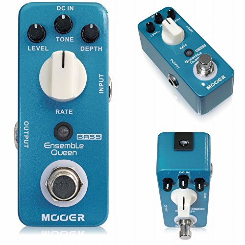 Mooerのエフェクターといえばギターペダルのイメージが強いと思います。しかし、実はこのミニサイズシリーズにはベース用エフェクターも多くラインナップされています。Mooerのミニサイズペダル、特にこのスタイルの初期から発売されているシリーズは、その殆どが既存の人気ペダルを元にした回路で作られています。しかし、そうではないペダルもあります。このEnsemble Queenもそんなペダルの1つです。ギター用のアナログコーラスペダル、Ensemble KingのベースバージョンなのでEnsemble Queenという名前がつけられていますが、回路自体は全く別物となっています。Ensemble KingはBOSSのヴィンテージコンパクトコーラス、CE-2が元になっています。CE-2にもベースバージョンのCE-2Bがあり、関係性としてEnsemble Queenのように思うかもしれませんが、そうではありません。Ensemble Kingaがアナログコーラスであるのに対し、Ensemble Queenはデジタル回路で作られるコーラスペダルです。コントロールノブはLEVEL、TONEは、DEPTH、RATEとなっていて、TONEコントロールでコーラスの明るさを調整することもできます。今回はそんなEnsemble Queenを店頭試奏でレポートしてみます。とはいえ、このペダルの特徴は音を出した瞬間にわかるほど、分かりやすいです。コーラスエフェクトはディレイタイムを動かして音に厚みを加えますが、その効果から音程感はあまり強くはありません。ギターの音域であれば問題ありませんが、ベースの音域になると特に低域の音程感にはかなり影響します。そのため、Ensemble Queenではローエンドにはコーラスはほとんどかかりません。また、コーラスサウンド自体がかなり上品な音色です。Ensemble Kingがきらびやかで爽やかなコーラスなのに対し、Ensemble Queenのコーラスはとてもきれいなコーラス。あまり倍音成分は強くなく、ローがしっかりと太くなります。強く揺らしても低域の音程感はキープされます。かなり良い音で使いやすいベースコーラスです。