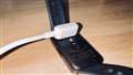 多賀一晃さん 充電時。磁力でもくっ付いているが、癖のついたケーブルの力より弱い。 |