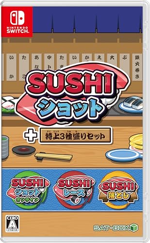 ・自らが購入した商品になります。 【概要】 ・ダウンロードタイトルとして販売された「SUSHIショット」「SUSHIショットオンライン」「SUSHIレース」「SUSHI落とし」の4タイトルを収録したゲーム集。 ・購入品。 【評価】 ・Switch本体にゲームカードをセットすると、4タイトルのアイコンが表示され、それぞれ単体のゲームとしてプレイが可能。 ・「SUSHIショット」は、「スイカゲーム」の果物を寿司ネタに変えて、手放し方と落下方向を変更したようなゲーム。なぜ投げた寿司ネタが上にとどまるのかわからないが、そもそも同じ寿司ネタが合わさると別のネタになること自体が現実にはあり得ないことなので、面白ければOK。繰り返しプレイしたくなる、いわゆる中毒性はかなりある。CPUや人との対戦も可能。 ・「SUSHIショットオンライン」は、「SUSHIショット」のオンライン対戦バージョン。フリー対戦やランクマッチがあり、オンラインの対戦は必ず成立しているように見えるが、ランクマッチのその日のランキングを確認すると対戦した相手が登録されていなかったり、負けた際にスキップすると対戦が終わり順位が確定したりするところから推測するに、時間内にマッチングしなかった場合には、CPU相手の対戦が始まっているようである。ランクマッチは1日あたり20回しか行えないため、総合のランキングは長くプレイした人が上位を独占していて、今から追いつくことはほぼ不可能だし、いまいちランキングとして機能していないように感じた。 ・「SUSHIレース」は、寿司ネタを車に見立てたレースゲーム。寿司ネタである必然性がないため、画面分割で4人プレイができるレースゲームだと考えて特に問題なし。 ・「SUSHI落とし」は、「どうぶつタワーバトル」など、対象物を順次落下させて摘んでいくタイプのゲームの寿司バージョン。寿司ネタの形にあまり変化がなく、「SUSHIショット」の寿司ネタのようなサイズ違いになっているため、「どうぶつタワーバトル」のような、対象物の形による積み方のバリエーションがあまりなく、崩れた時の納得感が弱い。 【まとめ】 ・それぞれダウンロード版が配信されていて、それなりにセールをやっていることがあるので、どうしてもパッケージでほしい人以外は、ダウンロード版をチェックすることをおすすめします。