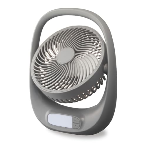 持ち運びしやすいポータブルタイプの充電式 ファンです。充電式なのでコードレスで 使えます。コードがないので好きなところどこでも 持ち運んで使えるのが便利です。USB給電しながら コードありで使うこともできるようになっています。 USB給電の時は、バッテリーの残量を気にする必要が ないです。サイズ感としては幅25×奥行き8×高さ30cm位 になっていて、大型ハンドルが付いているので、 持ち運びしやすいです。風量は三段階調節、向きは 手動で上向き90°、下向き90°無段階調節できます。 2段階の調光機能付きLEDライト付きです。